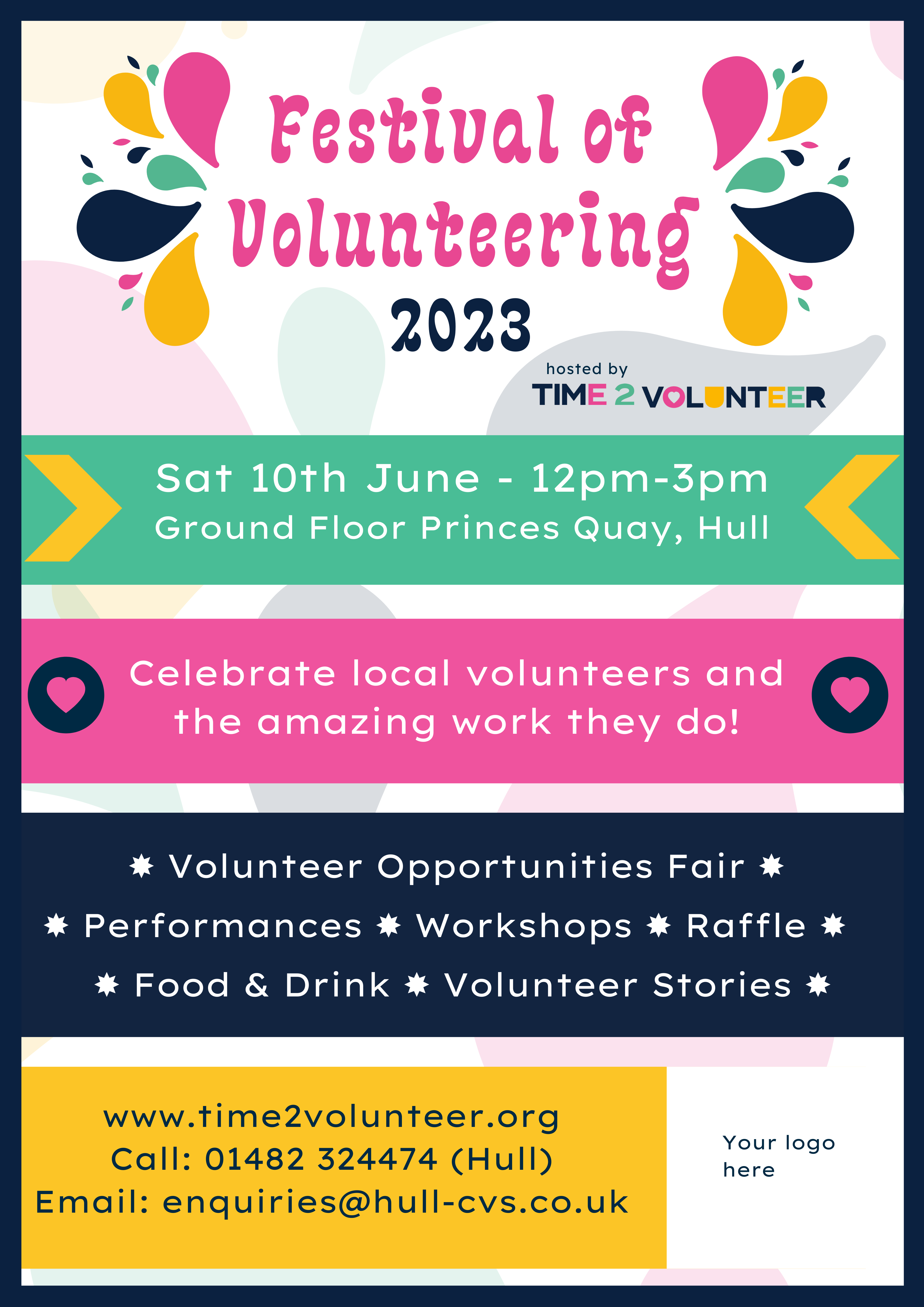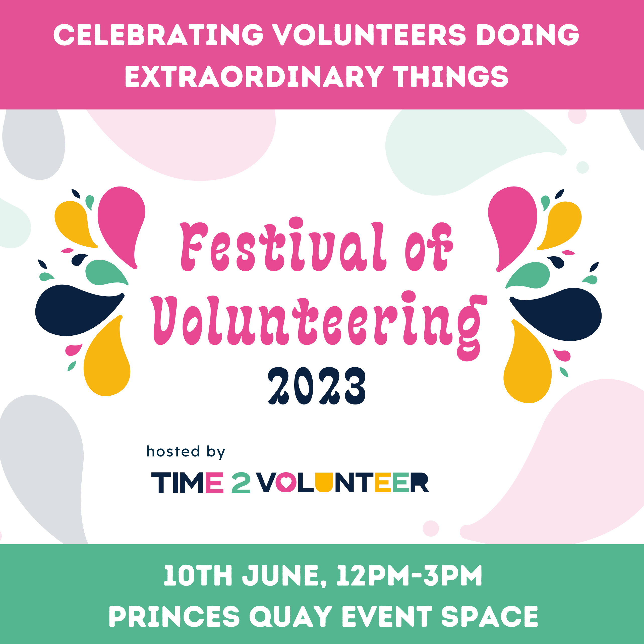 Saturday 10th June 2023, 12 - 3pm, will see Hull and East Yorkshire’s first Festival of Volunteering, hosted by Time2Volunteer, on the ground floor at Princes Quay in Hull.
