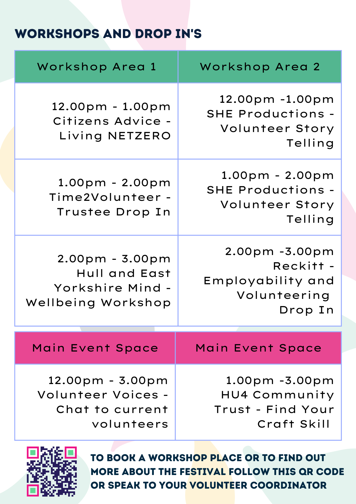 There will be lots of opportunities for learning, development, and fun, with entertainment, performances, workshops, food, volunteers' prize draw, an opportunities fair, and the chance to hear from volunteers.